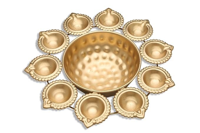 Celebrate the festival of lights with this 10 Diya Plate – an elegant and traditional decorative plate designed to hold 10 diyas. Ideal for Diwali Puja, home décor, temple use, and festive gifting.